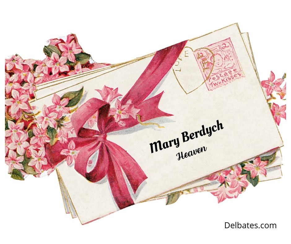 Although I knew she was in Heaven, I still had the urgency to send her a card. So I did. Yep I bought one, signed it, and addressed it: Mary Berdych ~ Heaven. I sealed it like usual, even put a stamp on it and headed to the post office.